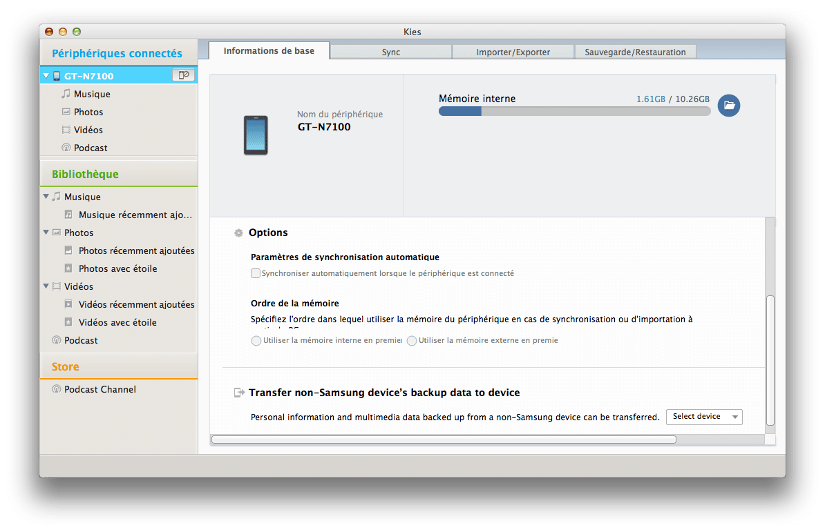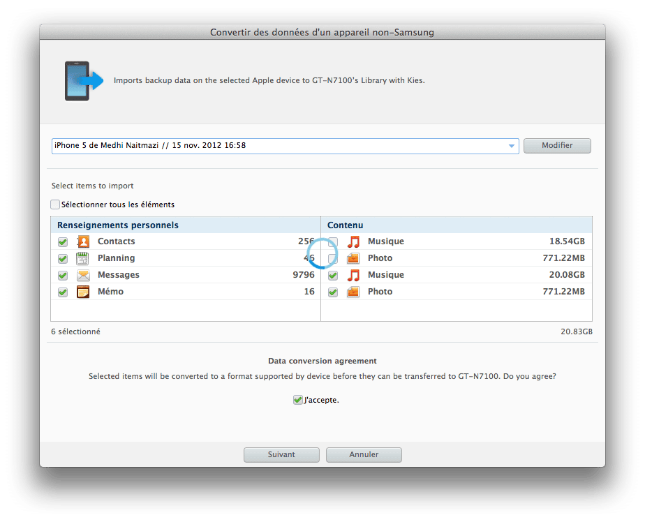 jai fait une sauvegarde de liphone jai telecharger kies mais il est en aglais et dans les informations de base il ny a pas Transfer non-Samsung device’s backup »