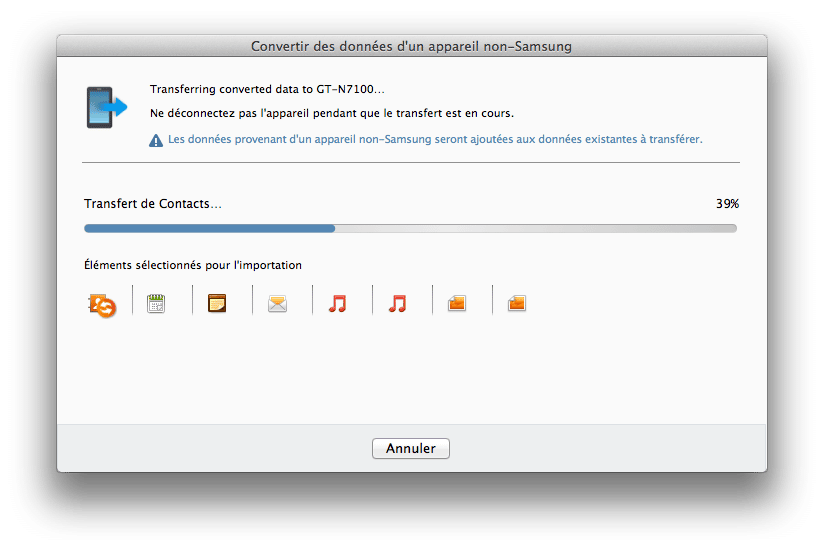 Et voilà, vous êtes tranquille, vous venez de récupérer toutes les informations de votre iPhone, iPod Touch ou iPad sur votre smartphone Samsung Android !