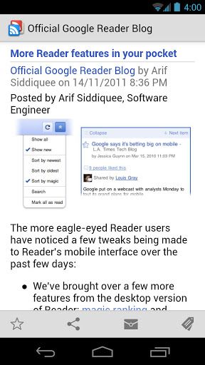 En 2005, Google avait lancé Google Reader, un agrégateur de flux RSS à la Netvibes. S’en est suivi, une version Android afin de suivre ses sites préférés.