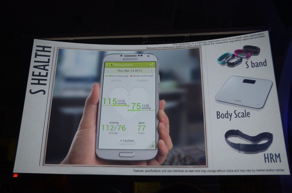 00h55 : S Health aura des accessoires : une balance, un bracelet et un capteur cardiaque avec plein de couleurs flashy.