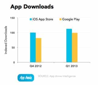 La bonne nouvelle, c’est que depuis le début d’année, presque autant de téléchargements sont réalisés sur le Play Store que sur l’App Store (90% sur le dernier trimestre exactement).