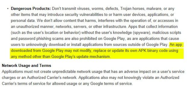 Aussi, le géant de la recherche n’accepte plus ce genre de pratique et vient de l’ajouter aux conditions générales de Google Play dans sa dernière version 4.0.27.