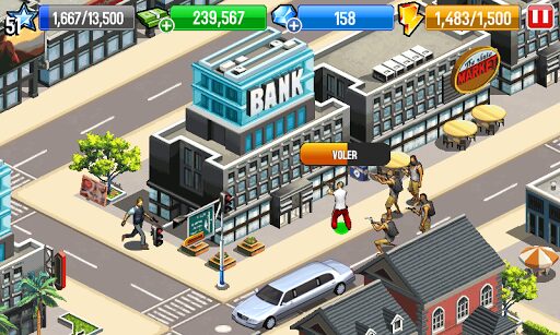 Ce jeux de gangster est bien, prise de main rapide, jeu entièrement en Français, mais le plus grand défaut est que l’énergie qui dirige les actions de notre personage ne se rechargent pas une fois l’appli fermée et c’est vraiment dommage comme ci des qu’on joue a un jeu avant de s’endormir on devrait lancer toutes les applications et les onglets web pour pouvoir profiter le lendemain ….