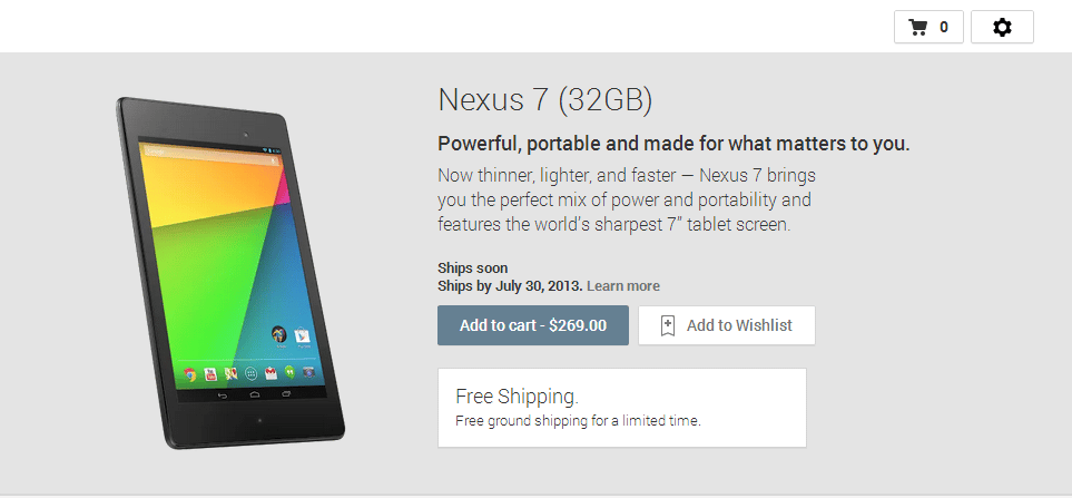 On attendait sa mise en vente pour la semaine prochaine, la Nexus 7 est déjà sur le Google Play américain (32GB, 16GB).
