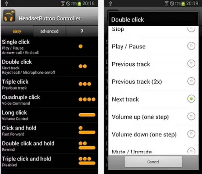 C’est pourtant relativement simple comme procédure (il faut être rooté et disposer d’un éditeur de texte avec les droits root, comme ES explorer). Ce n’est pas vraiment l’enlever car on inverse dans un fichier config la commande d’appel du bouton milieu avec celle du bouton « 3 » (vol+ sur le casque). Du coup, le bouton du milieu sur le casque appelle la fonction du bouton 3 et il suffit ensuite,dans headset button controller, de reparametrer le bouton 3 avec play, pause, next track, prévious track (ou plutôt 2xprevious track personnellement), vol+, vol-, etc (quadruple clic pour stop, ou mieux, configurer l’ouverture de l’app music au branchement du casque et le stop au débranchement).