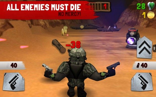Il y en a eu des copies de Temple Run, mais celui-ci est bien différent des autres, déjà par son concept. Une idée sortie de nulle part : vous êtes un gorille combattant engagé dans une course folle. Armé jusqu’aux dents à base de mitraillettes, grenades… votre mission est la suivante : éliminer les ennemis, qui ne sont personne d’autre que, des singes sur des tourelles.