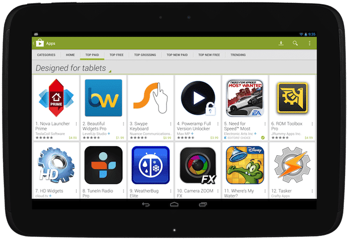 Le Play Store va enfin faire la part belle aux tablettes ou plutôt, aux applications & jeux adaptés aux écrans 7 et 10 pouces.