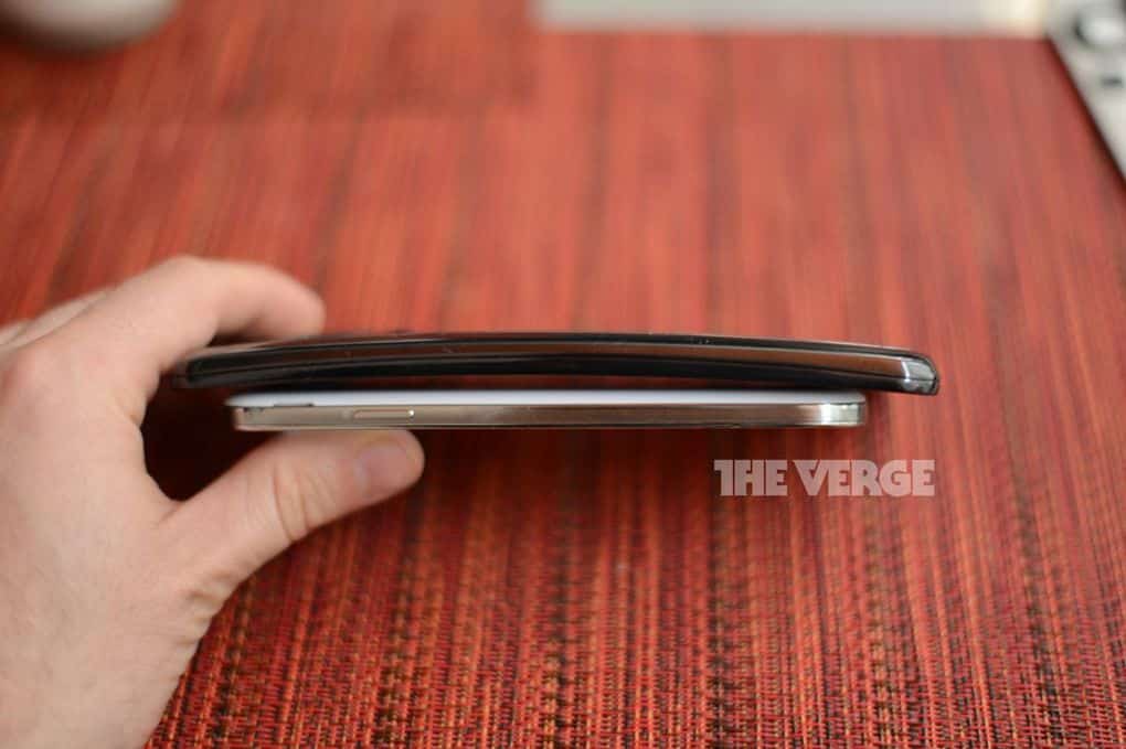 On y voit la courbe bien mieux que sur le teasing de LG. Avec son écran 6 pouces, le LG Flex est bien plus imposant que son autre ennemi de taille, le Samsung Galaxy Note 3.