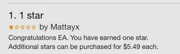 Après avoir acheté Fifa 14 en version mobile, il a découvert avec effroi les achats in-apps et il l’a fait savoir en ligne, en laissant un commentaire salé. Il expliquait qu’il ne donnait qu’une étoile au jeu « et que chaque étoile supplémentaire coûterait $5.49. »