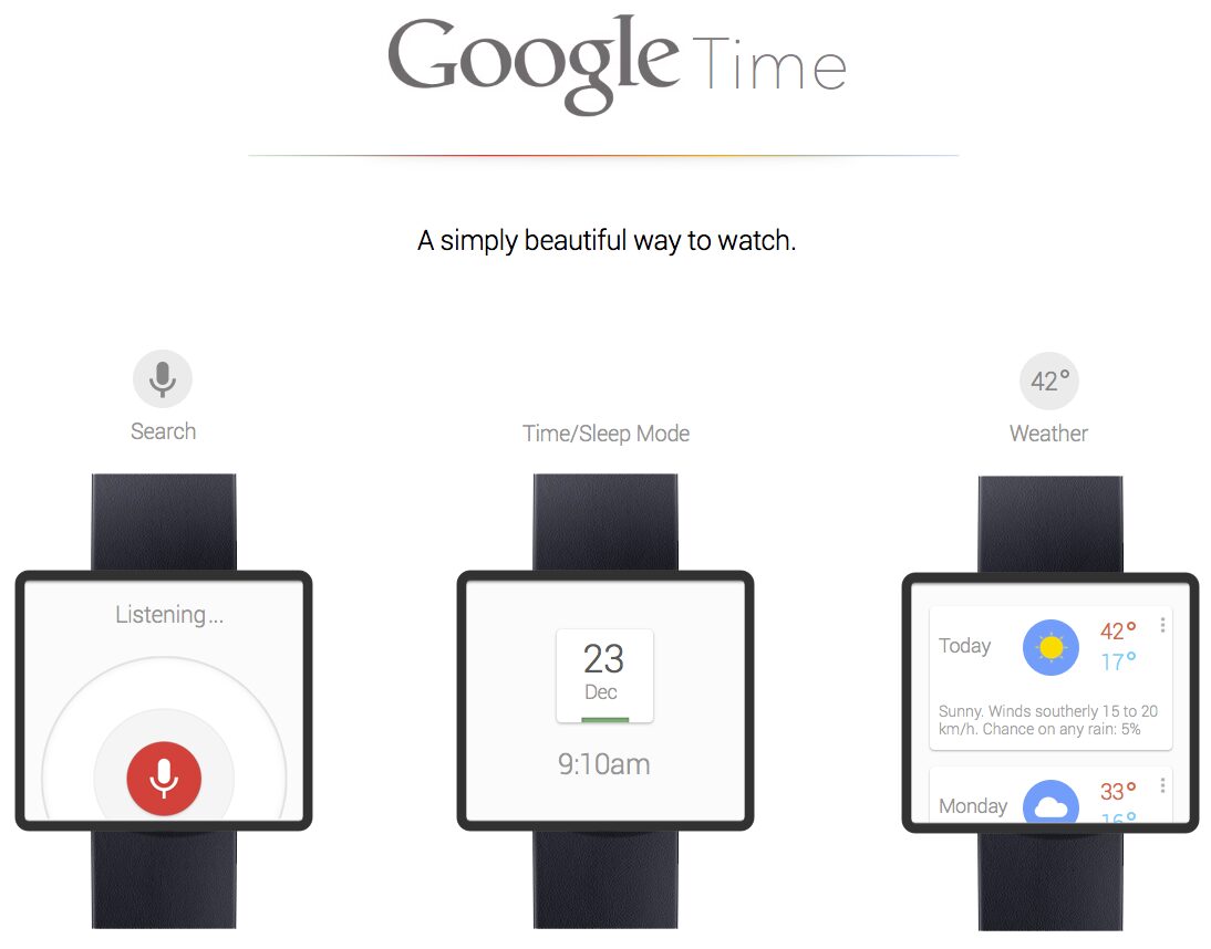 Si le Wall Street Journal dit que la montre intelligente est en phase finale de conception et proche d’une production en masse, voilà un bon moment pour vous présenter la Google Time, un concept de montre basée sur Google Now.