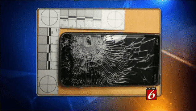 On peut d’ailleurs constaté l’impact de la balle dans la batterie du téléphone. La victime n’a quasiment pas été blessée.