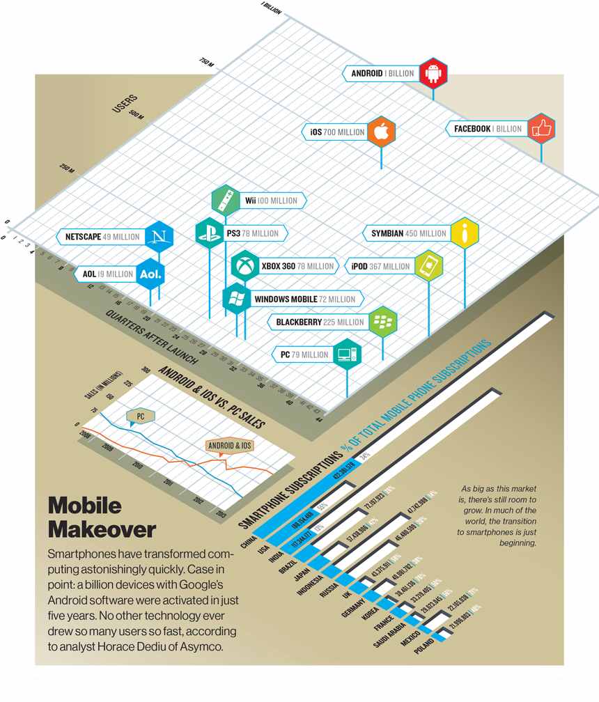 Apple atteint les 700 millions, mais Symbian se limite à 450 millions d’utilisateurs malgré 11 années et, sur la même période, BlackBerry a tout juste dépassé les 225 millions dans le même temps.