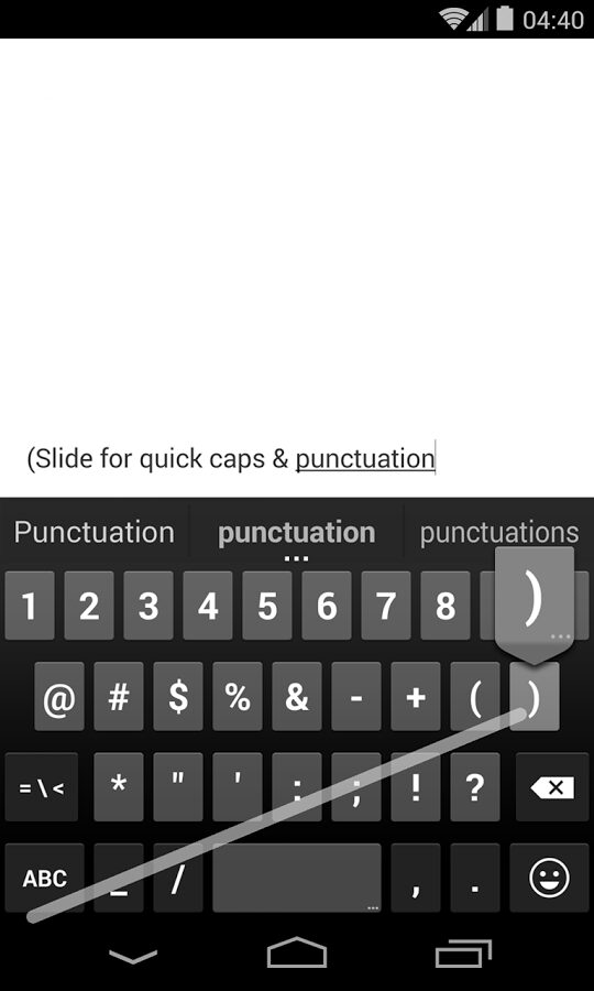 • Saisie gestuelle tenant compte des espaces. Vous n’avez plus à lever le doigt pour insérer un espace lors de la saisie gestuelle, il suffit de passer le doigt sur la barre d’espace.