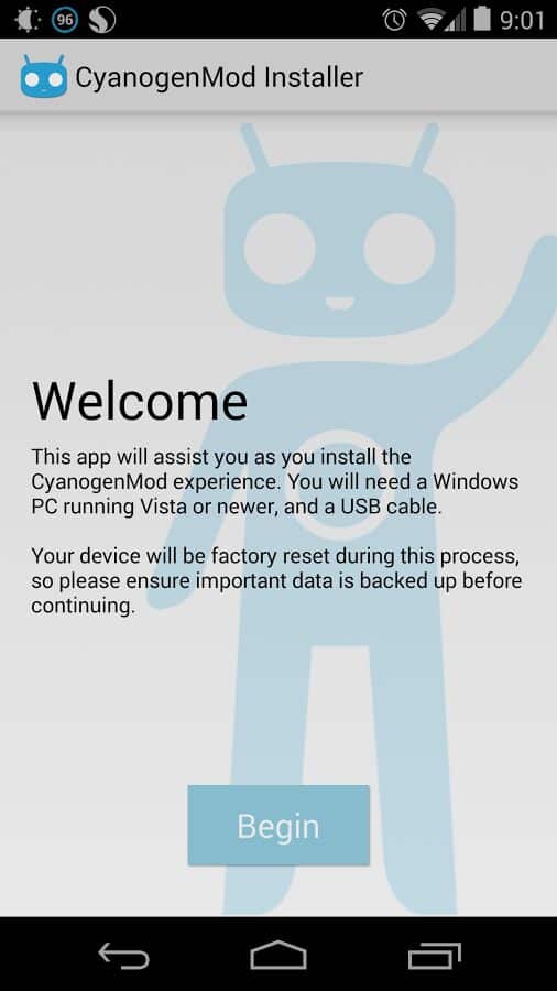 Ensuite, Cyanogenmod Installer fait tout pour vous si vous avez un appareil dans la liste.
