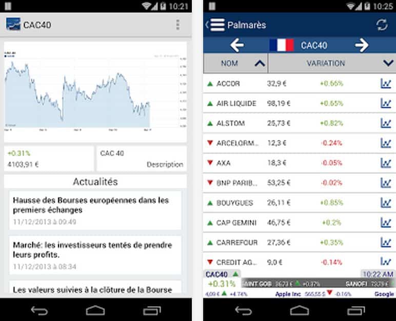 On notera également une section news qui permet de suivre les évènements de la bourse dans la même application.