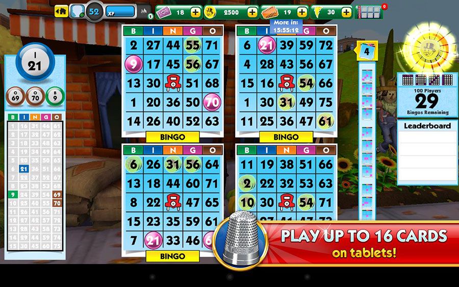 Le but du Bingo est simple mais addictif : des numéros sont tirés les uns à la suite des autres et vous devez sur une carte, obtenir un schéma précis avec les numéros pour gagner ! Le jeu dispose de 16 cartes sur tablettes et 8 sur smartphones. Vous pouvez gagner au fur et à mesure des propriétés Monopoly et les améliorer avec vos gains. Ce jeu dispose également de plusieurs mini-jeux.