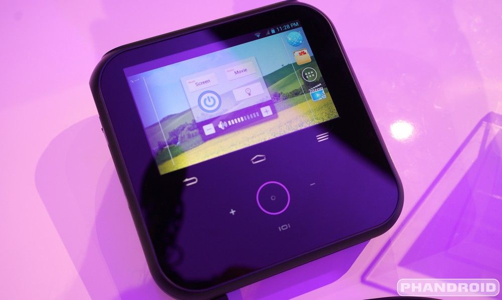 Tournant sous Android, cet appareil dispose d’un petit écran (480×800) pour les commandes, mais il est capable de projeter une image de 120 pouces de diagonales.