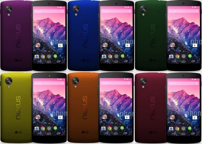 Un lecteur de Phonearena a envoyé des clichés avec les nouveaux coloris suivants pour le Nexus 5 : rouge, orange, jaune, vert, bleu et violet.