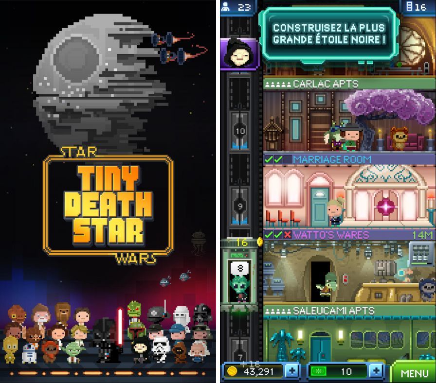 Pour information, Tiny Death Star reprend le principe du célèbre Tiny Tower en y ajoutant l’univers toujours aussi fort de Star Wars. C’est la rencontre entre NumbleBit et LucasArts.