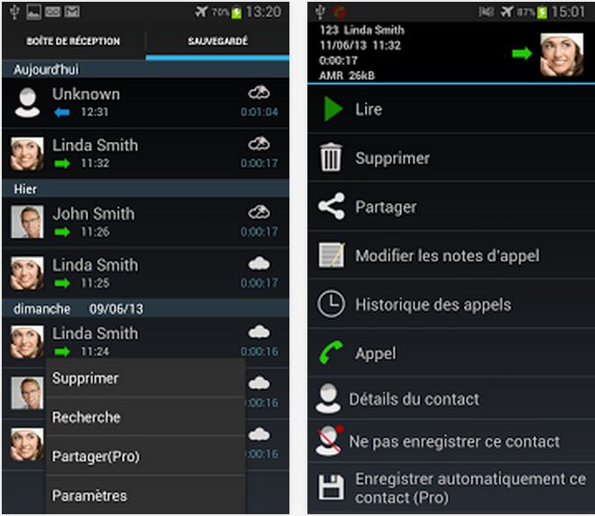 On peut aussi ajouter des notes, synchroniser sur Drive et Dropbox ou encore partager chaque appel enregistré.