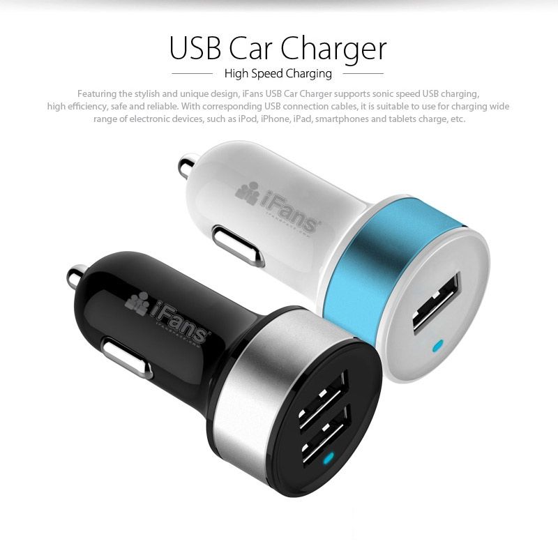 Ce chargeur allume-cigare USB possède deux sorties USB de 3.1A (une de 2.1A et l’autre de 1A).