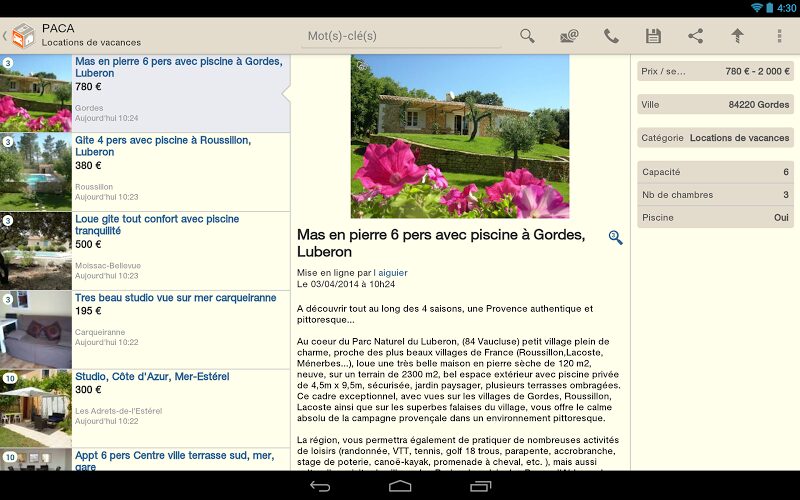 Enfin, on peut donc parcourir et trouver la perle rare sur Leboncoin depuis sa Galaxy Tab, Xperia Tablet, Asus Transformer ou autre tablette Android.