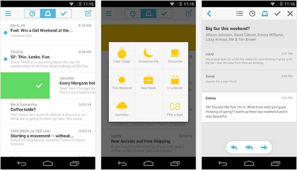 Rachetée depuis par Dropbox, l’app Mailbox propose de simplifier le traitement des messages via des gestes mais aussi des algorithmes qui apprennent de vos habitudes.