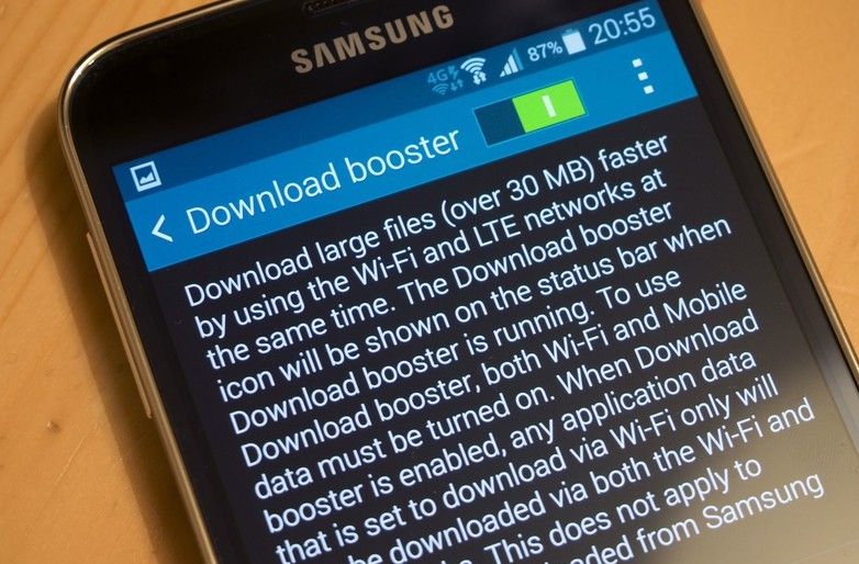 L’astuce est en fait que la fonction Smart Booster du Galaxy S5 utilise votre 4G et le réseau Wifi pour télécharger en combiné.