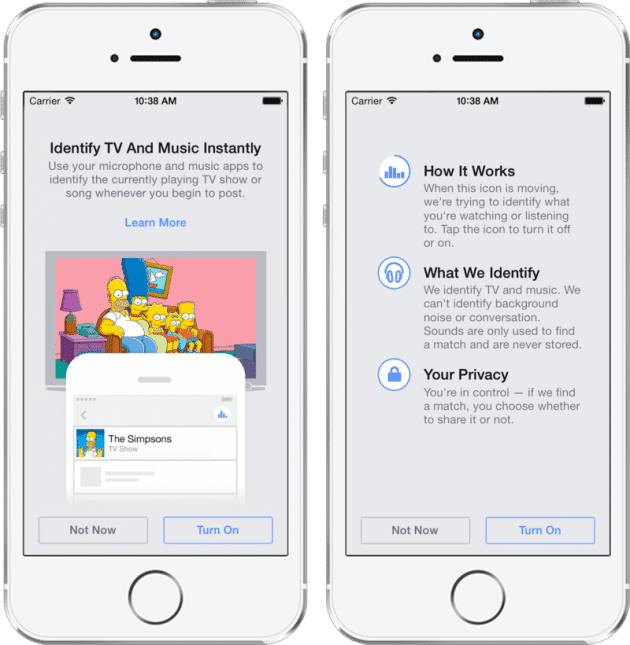 L’option, qui pourra être activée dans les réglages, fonctionnera en continu, sans avoir à lancer la recherche, au moment d’entendre un son ou un show que vous aimez. L’app proposera ensuite la possibilité de partager le résultat sur les réseaux sociaux, en incluant un extrait sonore de trente secondes. Tout est fait pour rester sur l’app Facebook.