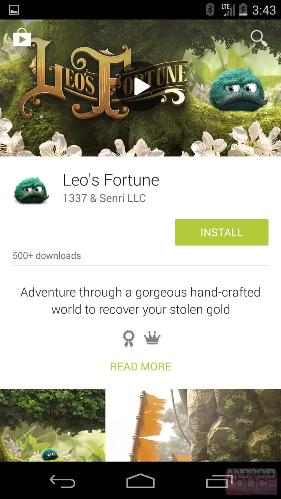 On y voit une page d’app du Play Store (le très bon Leo’s Fortune) et une page livre. La différence est flagrante, qu’en pensez-vous ?