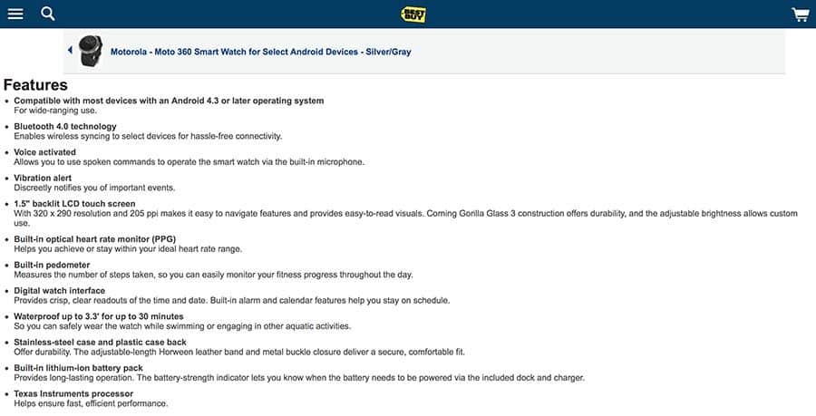 Motorola Moto 360 sur Best Buy : prix et fiche technique