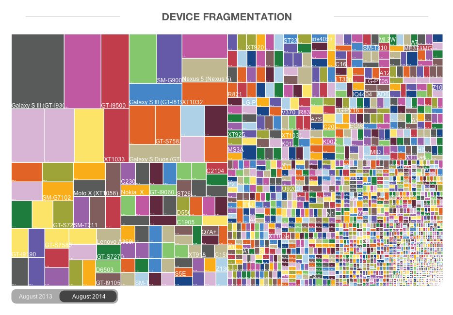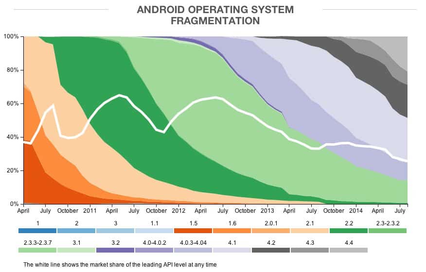L’institut OpenSignal vient en effet de publier une étude assez intéressante sur cette fragmentation. Pour ceux que ça intéresse, vous retrouverez l’article complet ici ou en pdf.