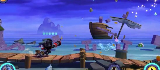 Surprise, il ne faudra pas lancer des oiseaux en colère mais bien courir et shooter tout ce qui se passe en arrière-plan. Un runner/shooter assez original avec des cochons et oiseaux robotisés