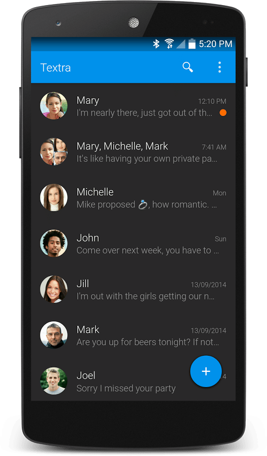 Avec Textra, on retrouve plus de 800 emojis, des images animées en provenance de Giphy, plusieurs thèmes différents, mais aussi des notifications flottantes, des réponses rapides par pop-up ou encore des MMS améliorés. Une application très complète.