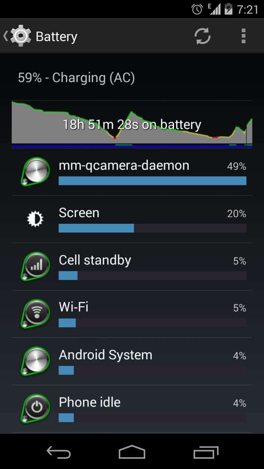 En effet, le processus « mm-qcamera-daemon » continuerait d’utiliser près de 50% du processeur pour rien, ne permettant pas de passer en mode économie d’énergie.