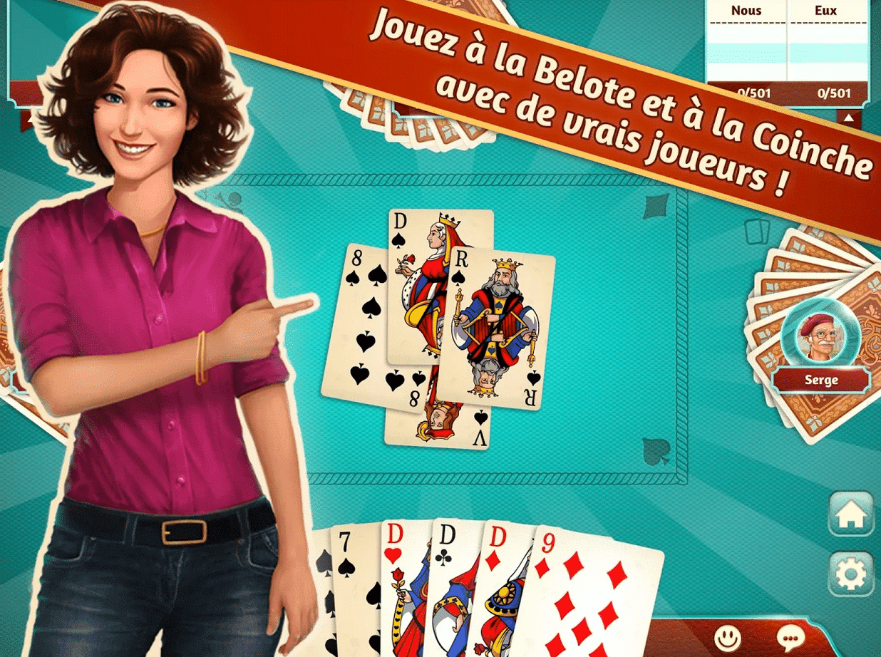Découvrez une application réalisée pour les amoureux de la Belote, dans le plus grand respect des règles du jeu. Vous pourrez même jouer à la Belote avec vos amis, envoyer et recevoir des cadeaux !