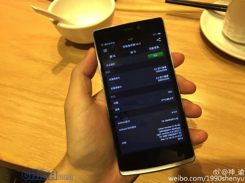 – Sur le réseau social Weibo, un internaute chinois a dévoilé des photos en annonçant qu’il s’agissait du OnePlus One Mini. Cette source a ajouté que ce mobile disposerait d’un écran de 5 pouces, avec un Snapdragon 615 et un capteur photo à l’arrière de 8 Mégapixels. Le tout pour moins de 200 €. A confirmer.