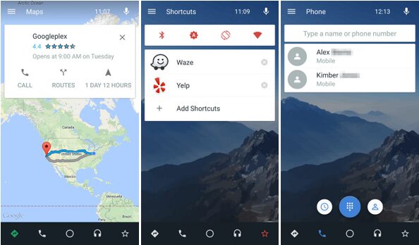 Ainsi, l’interface est totalement repensée, pour que le mobile ou la tablette accrochée au tableau de bord, reste lisible, même avec une attention particulièrement limitée.